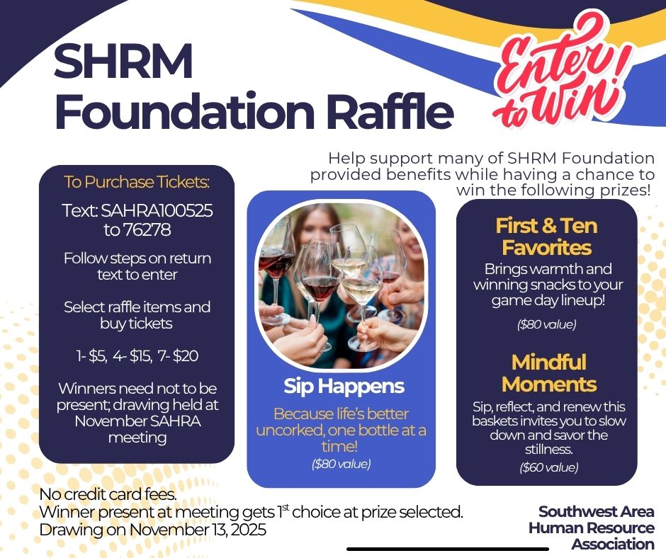 October is also Membership Month, drawings for renewals and bringing guests will take place in addition to the SHRM Foundation Raffle.
